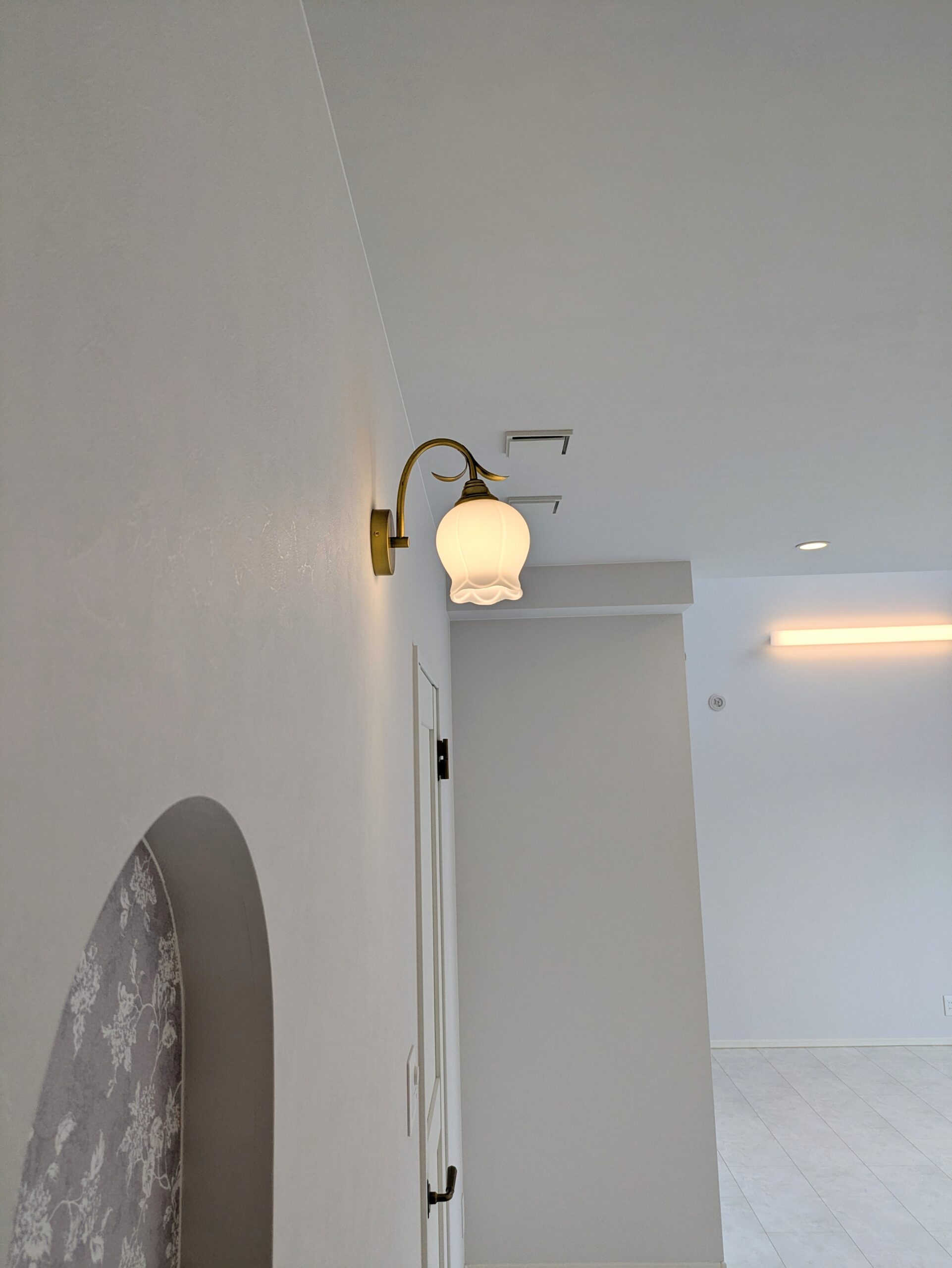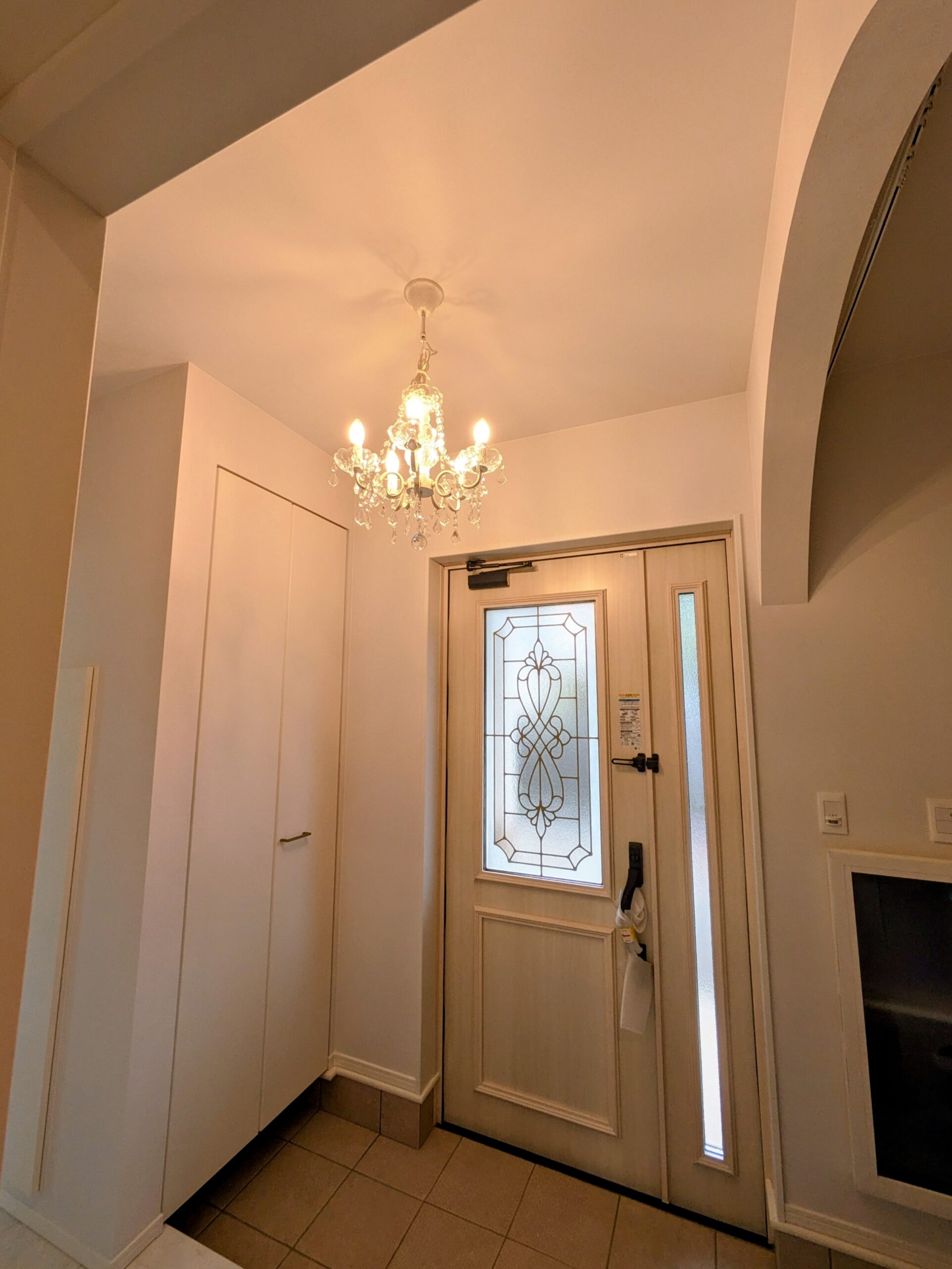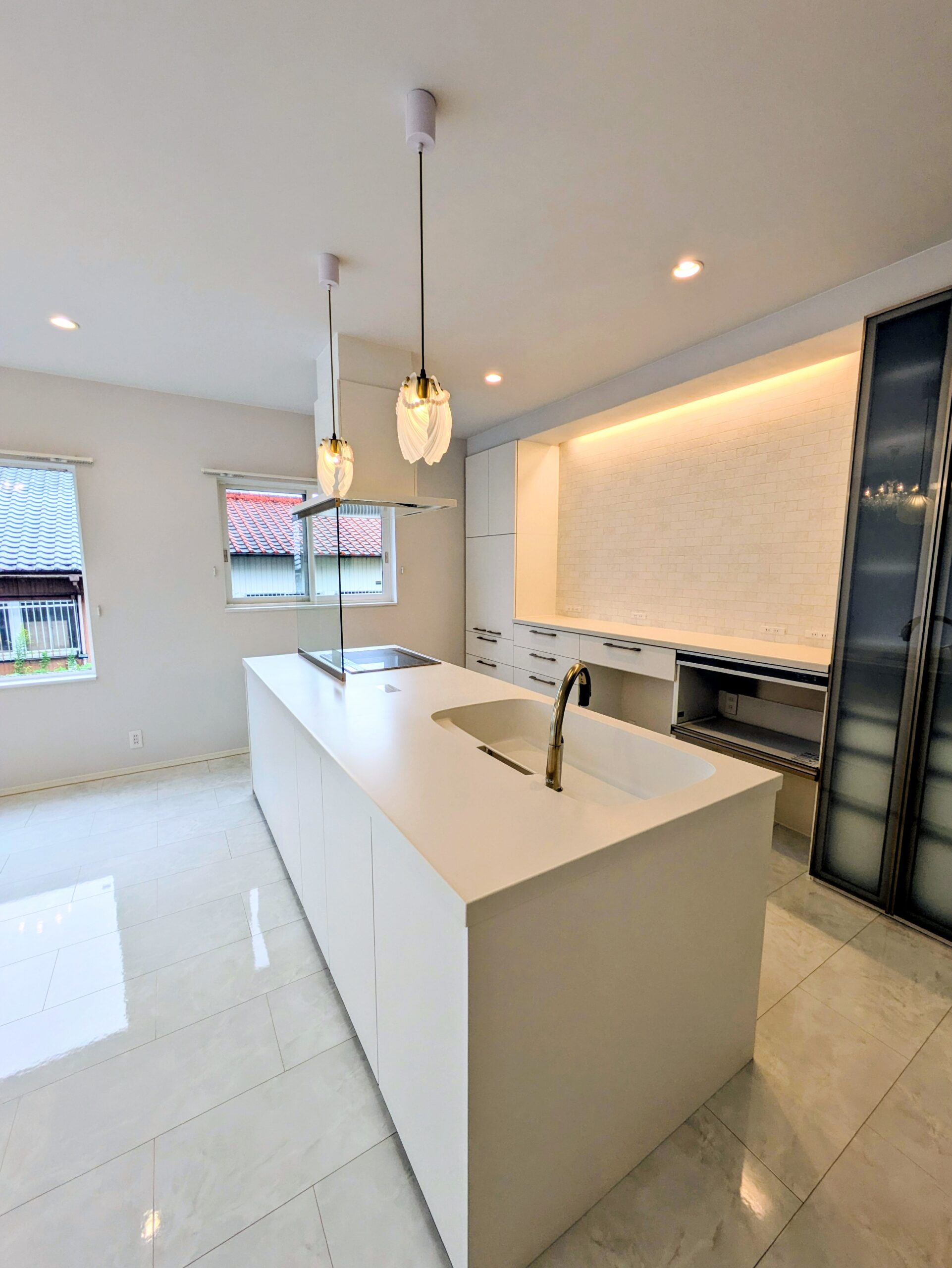 土佐清水市 白の鏡面フロアとステンドグラスが映えるエレガントな住まい