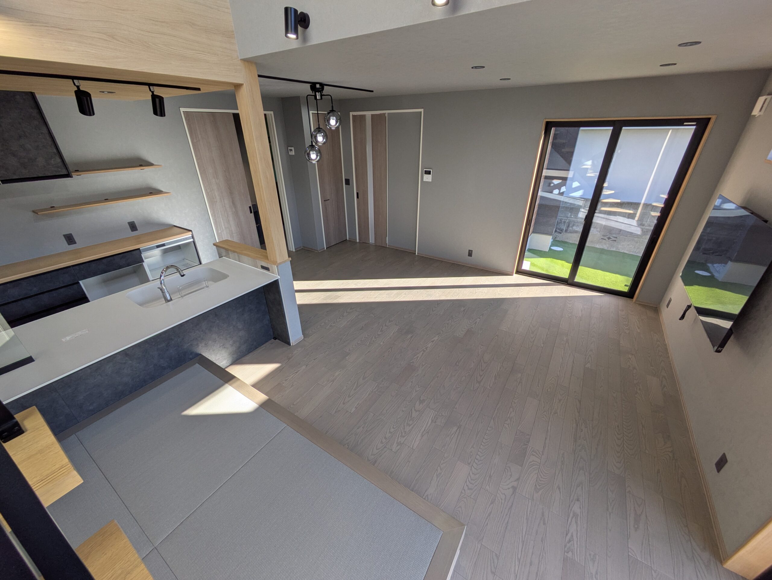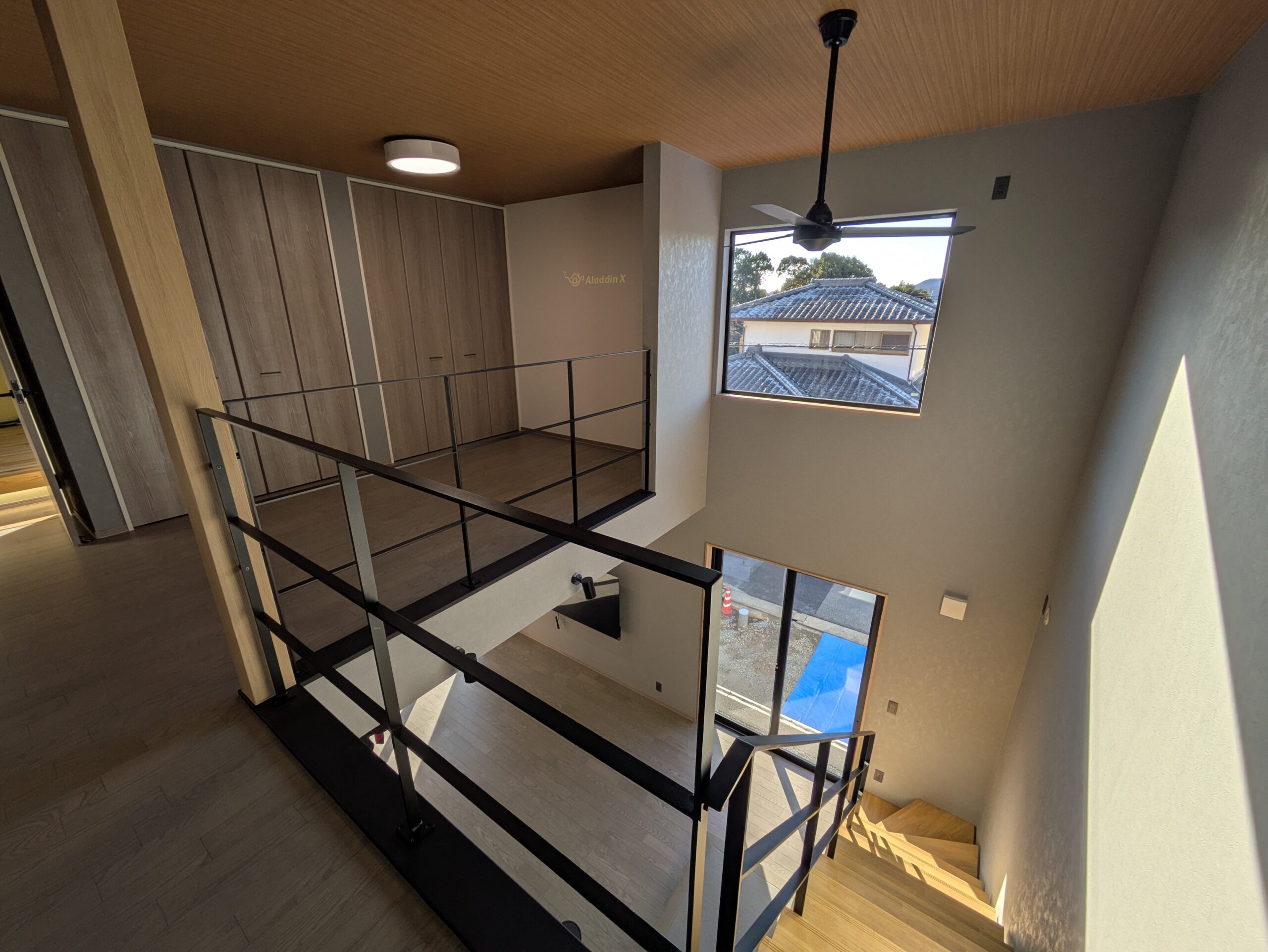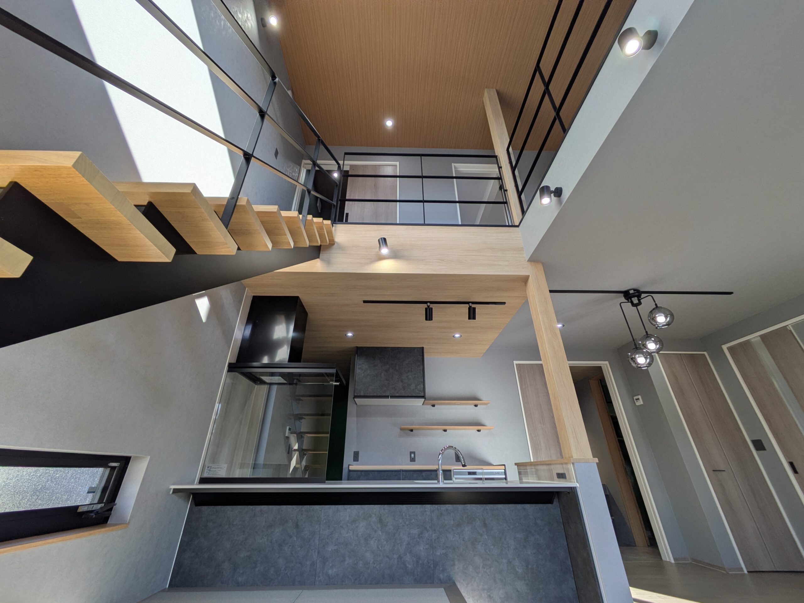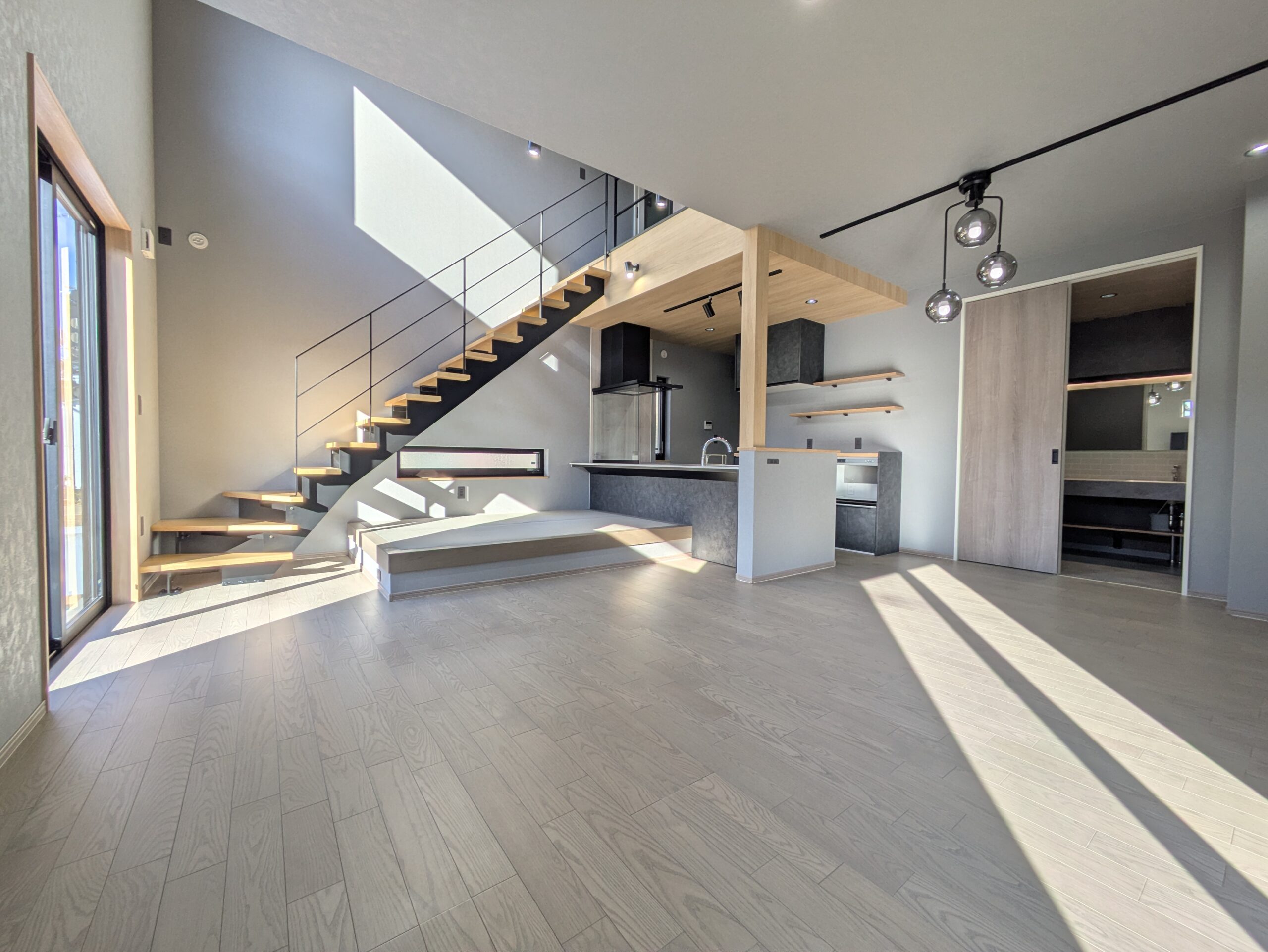 高知市西秦泉 吹き抜け×アイアン階段のある家 小上がり畳&横並びダイニングの暮らし